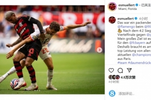 穆勒社媒:目标是再为拜仁踢三场比赛,对阵巴黎需发挥最佳水平